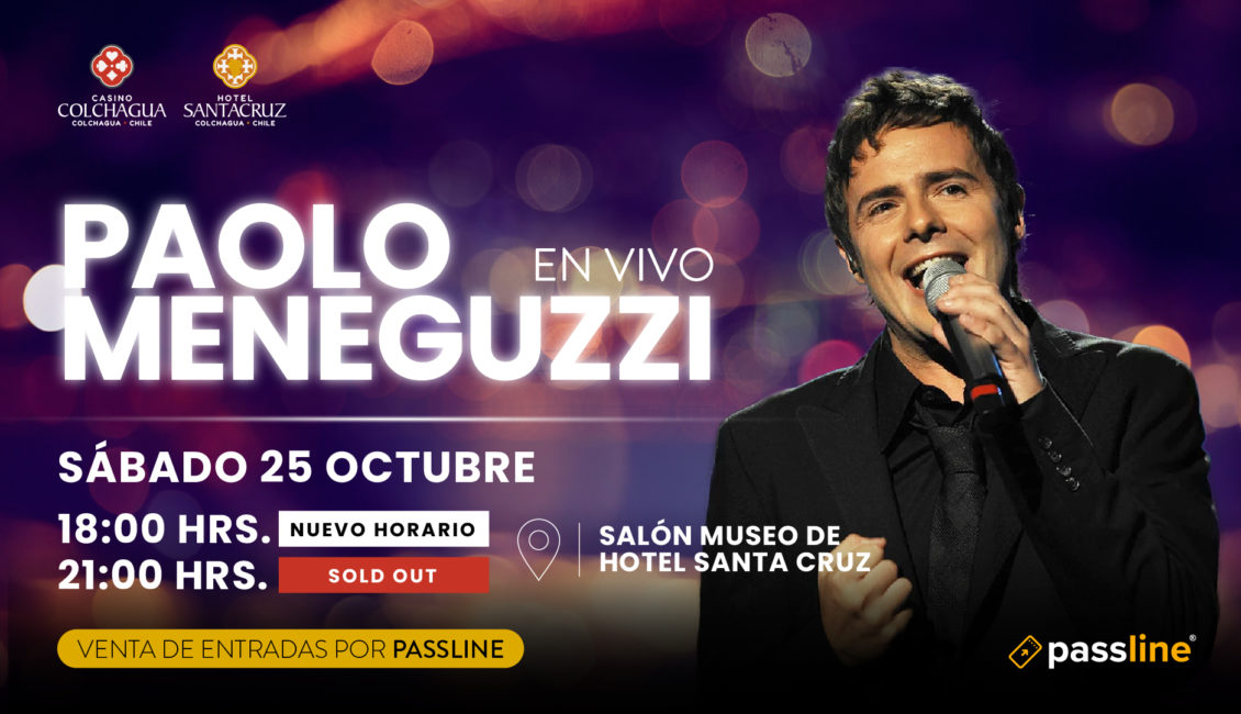 El reconocido cantautor Paolo Meneguzzi llega a Casino Colchagua para deleitarnos con todos sus éxitos y su energía única en el escenario.