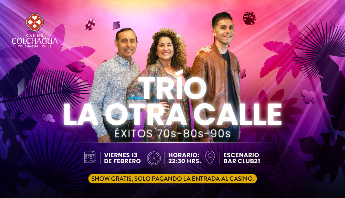 Este viernes 13 de febrero, revive los grandes clásicos de las décadas doradas junto a Trío La Otra Calle en Casino Colchagua.